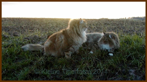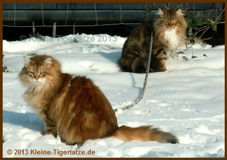 |  Sibirische Katzen lieben Spaziergänge zu jeder Jahreszeit Sibirische Kater Churchill und Pascha