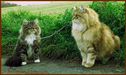 |  Sibirische Katzen lieben Spaziergänge zu jeder Jahreszeit Sibirische Kater Churchill und Pascha