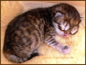 Goldene Kitten werden sehr dunkel geboren und sind manchmal schwer von "warmen" black-Tabbys zu unterscheiden . |
